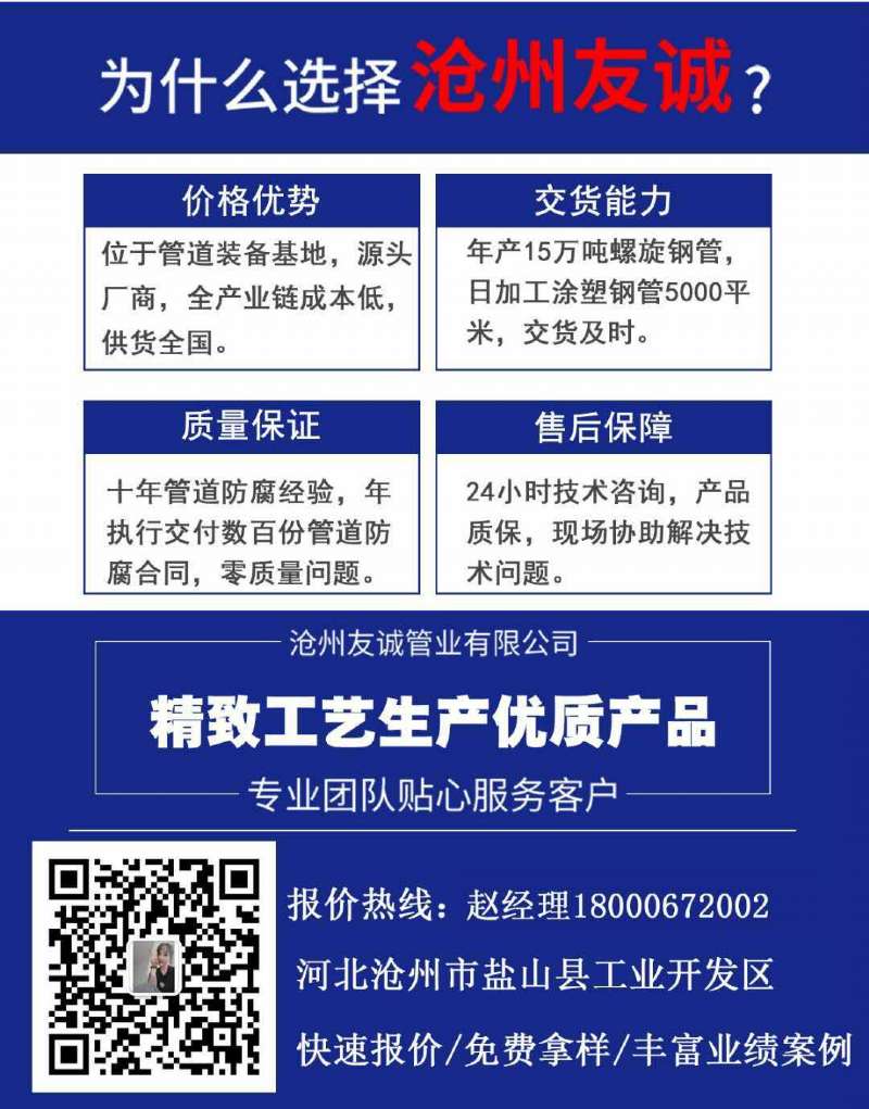 滄州友誠管業(yè),是一家規(guī)模宏大而專業(yè)生產(chǎn)雙面埋弧焊螺旋鋼管的廠家,本公司技術(shù)精湛,所生產(chǎn)的優(yōu)質(zhì)產(chǎn)品高頻螺旋焊管享譽(yù)行業(yè)。公司以“至誠至信,雙力雙贏”為根本宗旨,堅(jiān)持科技興企的發(fā)展戰(zhàn)略,恪守商規(guī),創(chuàng)新進(jìn)取,贏得了聲譽(yù),贏得了市場,得到了社會各階層的認(rèn)可。友誠公司成立多年以來不斷壯大,榮譽(yù)是社會給予我們最具說服力的肯定,處于這個(gè)高速發(fā)展的時(shí)代,我們也必定竭力以赴、繼往開來,“銘求質(zhì)量、竭誠服務(wù)”的企業(yè)防針,永恒“科技興企、科技強(qiáng)企”的戰(zhàn)略,致力于發(fā)揮品牌效應(yīng),發(fā)展以高品質(zhì)產(chǎn)品為載體,講求創(chuàng)新的理念與實(shí)力的兼容并蓄,使我們在邁入集團(tuán)型企業(yè)發(fā)展的里程碑中,堅(jiān)持敢為人先,以人為本。